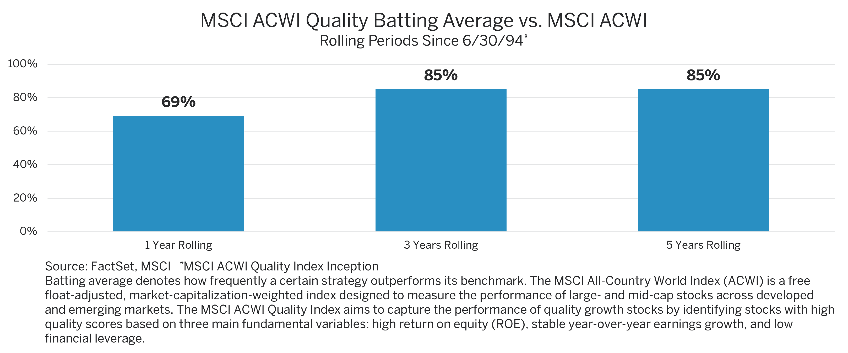 Assuming the current environment of higher volatility and higher dispersion of returns continues—and we think it will—we believe that an active, quality-oriented approach has a stronger likelihood of capturing alpha (i.e., excess returns versus the benchmark index). And we think there will continue to be intriguing opportunities to acquire quality companies at attractive valuations across regions and sectors thanks to some irrational price movements in recent years (and perhaps in the quarters ahead).
